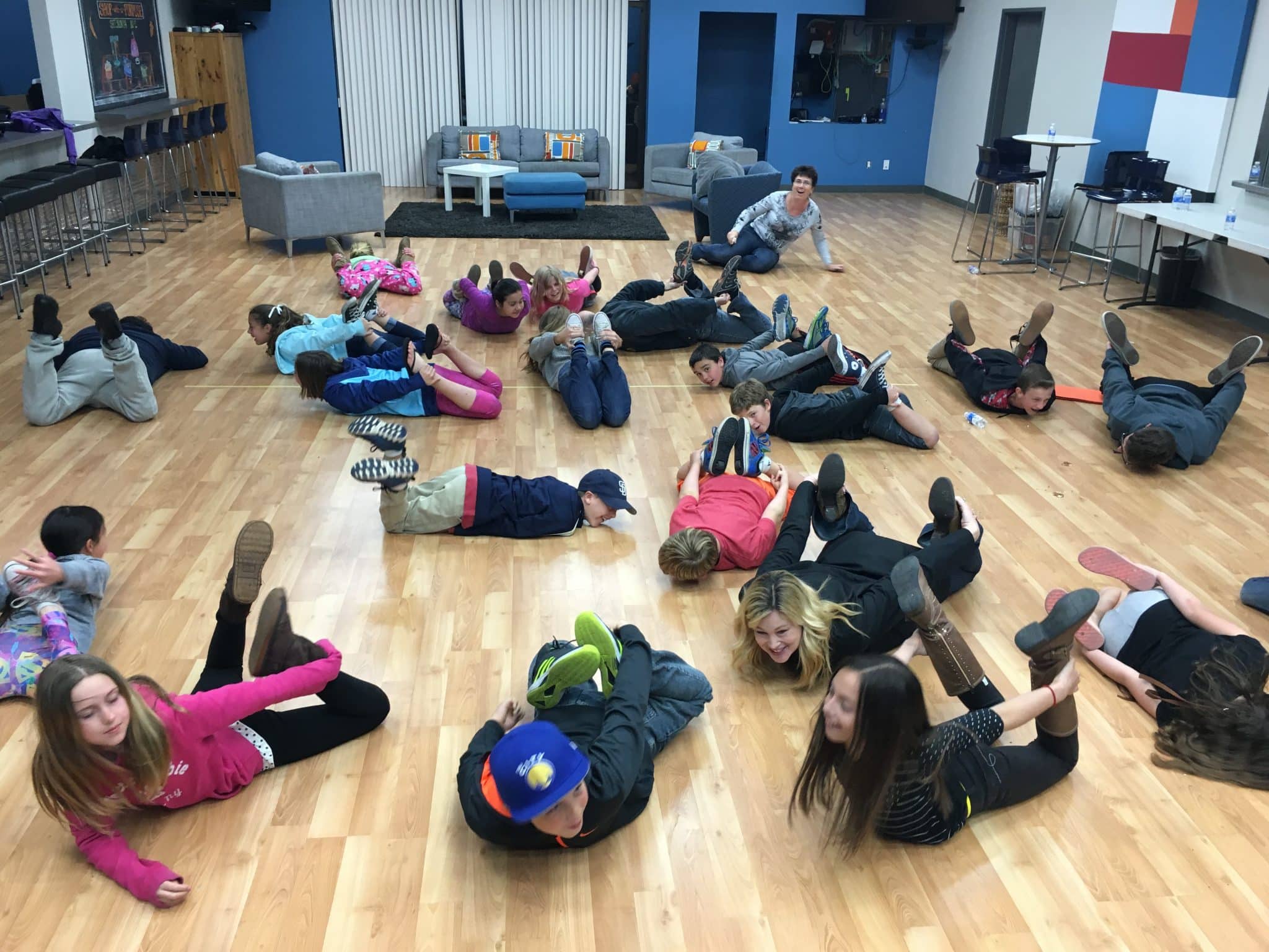 Our group time started out with a super fun mixer – called Poop Deck. Ms. Chrissy called out either beached whale, man overboard, lovers leap, three men rowing or four men eating. The kids had to pair/group up accordingly and whoever didn’t make it was out. It was really funny (see photos below)!