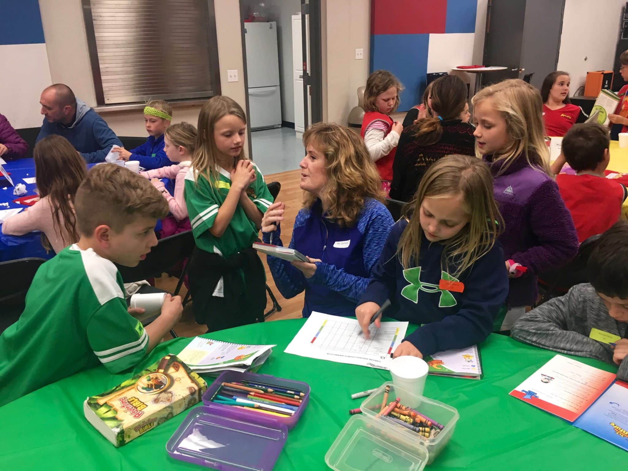 All our leaders and clubbers were reunited last night to kick off our 2017 Winter/Spring session! The Cove was packed with 68 kindergarten through 3rd graders – and 16 of them were brand new clubbers joining us this session! In addition, there’s the 28 volunteers that make this program happen; they give up their Wednesday evenings to pour into these kids, helping them learn God’s word and enjoy every minute of it!