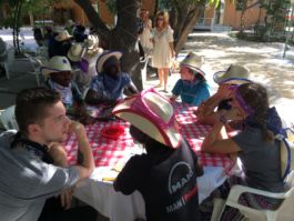 One of the highlights of the trip was bringing the teenagers from Good Rest back to our Hotel for a Hoe-Down. Arriving at the hotel the teens were given bandanas and cowboy hats and served a light lunch. After hearing a message and testimonies from team members about how to be respectful in our boy/girl relationships, the plaid-covered tables were pulled back and the square-dancing began. So much laughter and joy filled that dance-floor!
