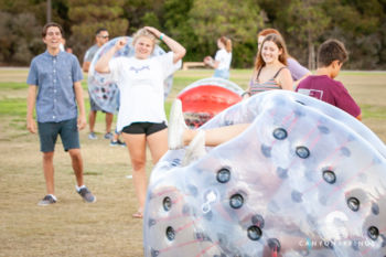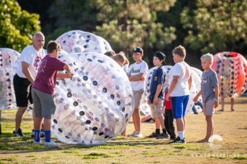 A few hundred families and friends of Canyon Springs descended on Scripps Ranch Community Park for an evening of fellowship, food and fun! At $5 all-u-can-eat, it was a great deal too. We had a Taco Cart, Hot Dog Stand, Snow-cones and Cotton Candy. Lawn games, football and Knockerball kept the kids having fun all afternoon long until the sun set.