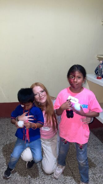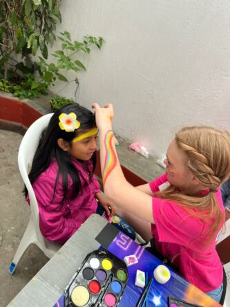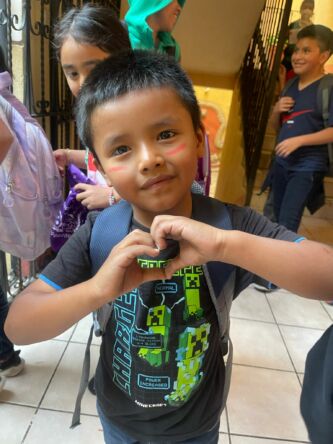 We celebrated with the children from Escuela Integrada by hosting a Family Night! Through our church fundraising efforts, all of the participants received tee shirts! We played games, worked on crafts, laughed, and posed at our photo booth, and shared a delicious pizza meal! We recognize that poverty often steals “playtime” from children. Connecting with these families is sweet and a mutual blessing.