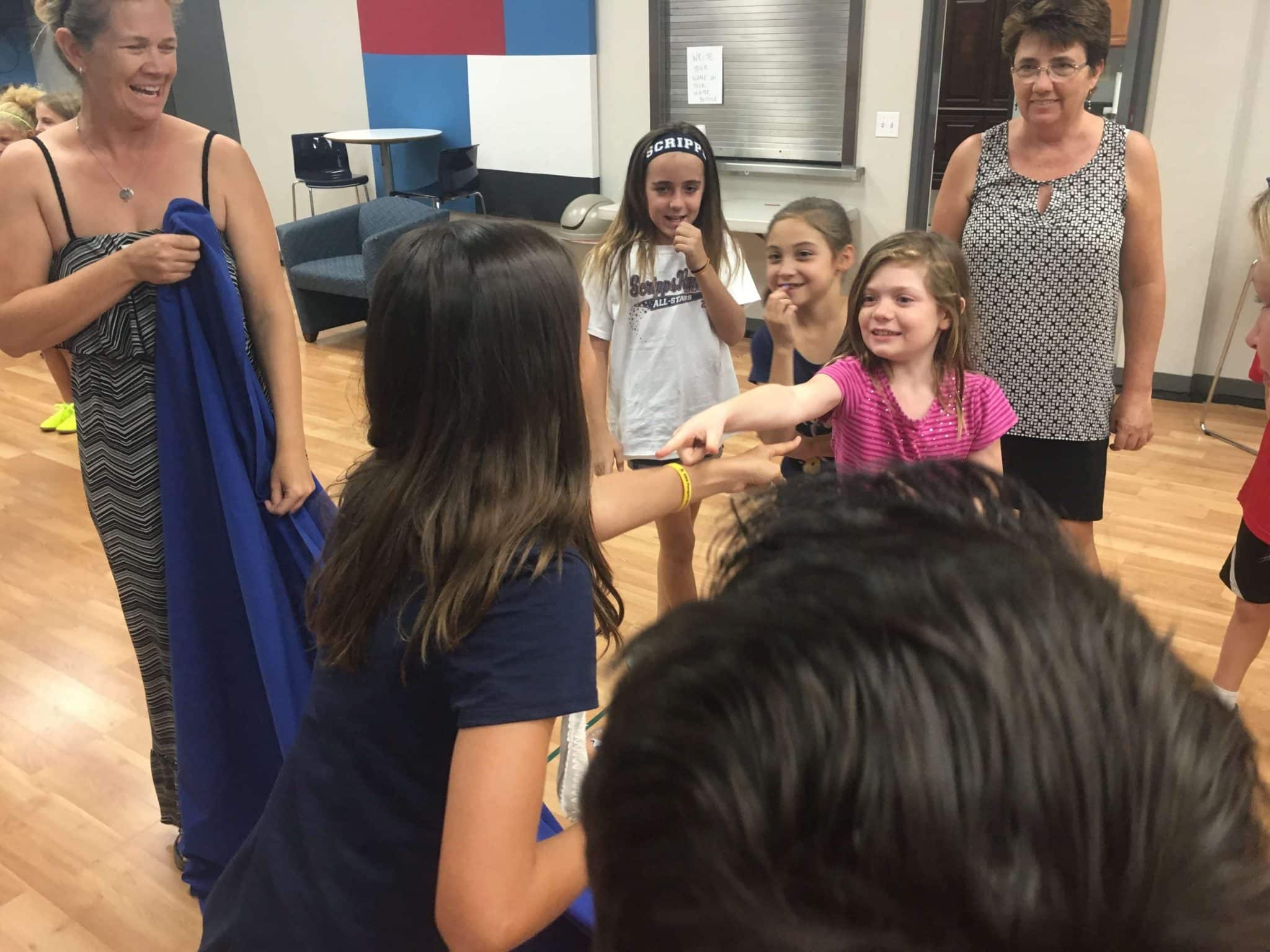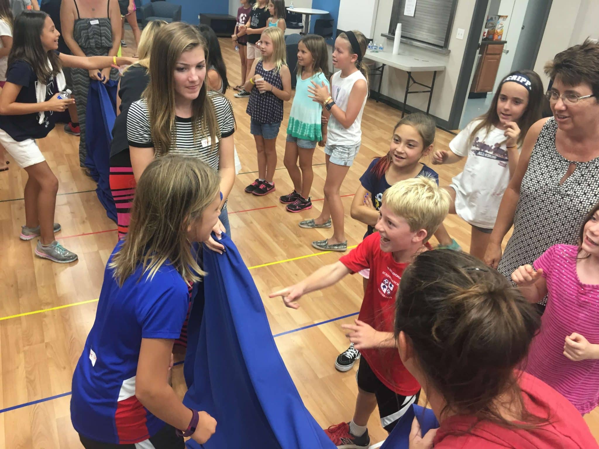 The group then came together and we did the “sheet” mixer. The clubbers were divided into five groups and each of those groups was split in half. The leaders held up a sheet between the two sides while one person came forward from each side. When the leader dropped the sheet, the clubber that could say the name of the person on the other side first got the point. Since we are at the beginning of the year and the kids are from all different schools, this is a great way for them to get to know each other’s names. :)