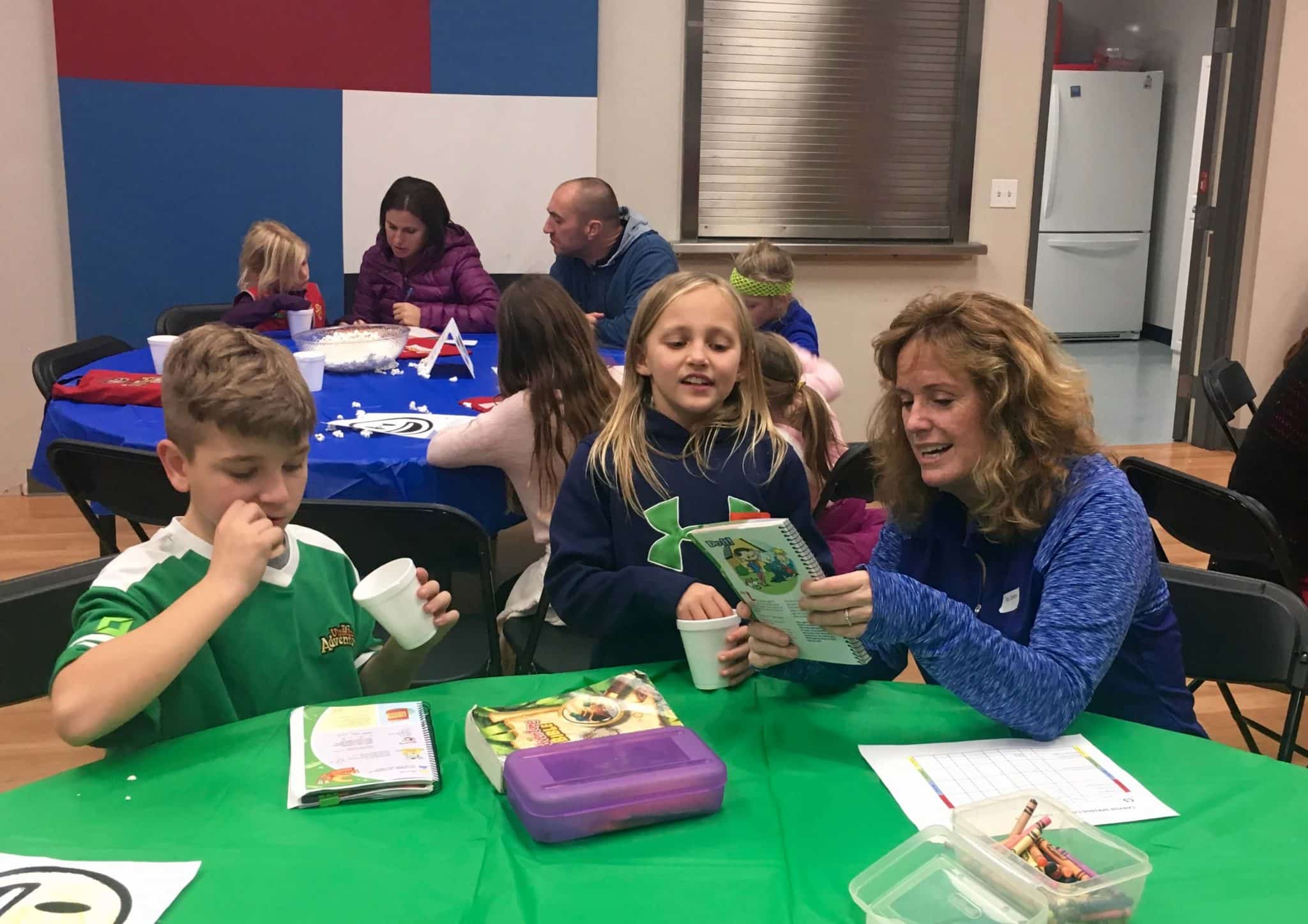 All our leaders and clubbers were reunited last night to kick off our 2017 Winter/Spring session! The Cove was packed with 68 kindergarten through 3rd graders – and 16 of them were brand new clubbers joining us this session! In addition, there’s the 28 volunteers that make this program happen; they give up their Wednesday evenings to pour into these kids, helping them learn God’s word and enjoy every minute of it!