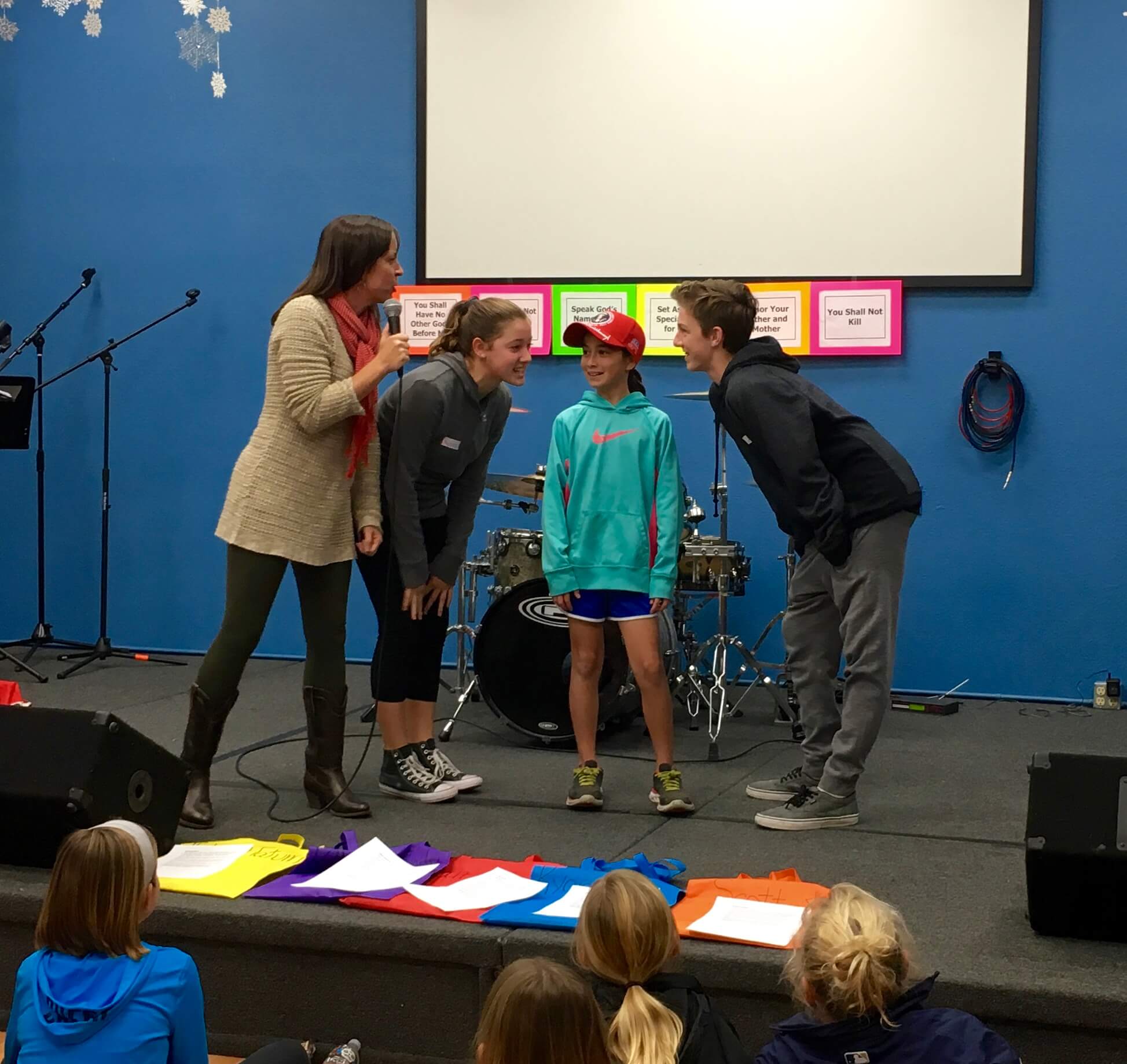 During Club Teaching Time, we reviewed our club verse (Psalm 1:1-3). Then we reviewed the first five commandments that we learned in the fall: