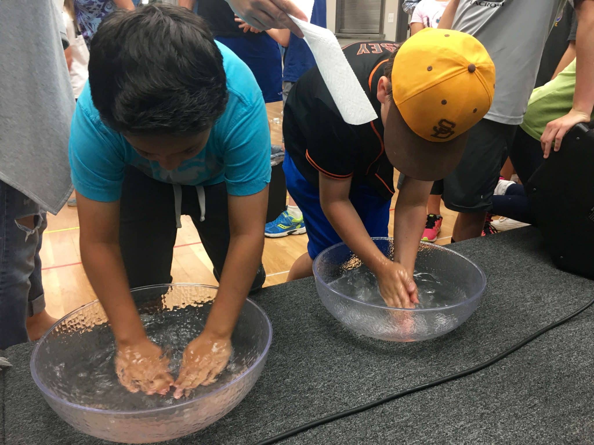 During Club Teaching Time we reviewed the Ten Commandments as a group. Each of the commandments was posted around the room; the group started in front of the first commandment. We recited it together and then Ms. Betsy read from a story called Dallas Understands. If they had broken the commandment from the story, then the children received a red mark on one of their fingers. At the end, most had dots on each of their fingers. Then they each received a red cross with permanent marker in the center of their palms, symbolizing Jesus dying on the cross. We had bowls of water at the front; each child washed their hands and said out loud, “My sin is real.” When they wiped their hands with paper towels, the red marks on their fingers were gone – but the mark representing Jesus remained. Jesus forgives our sins when we have Him in our life.