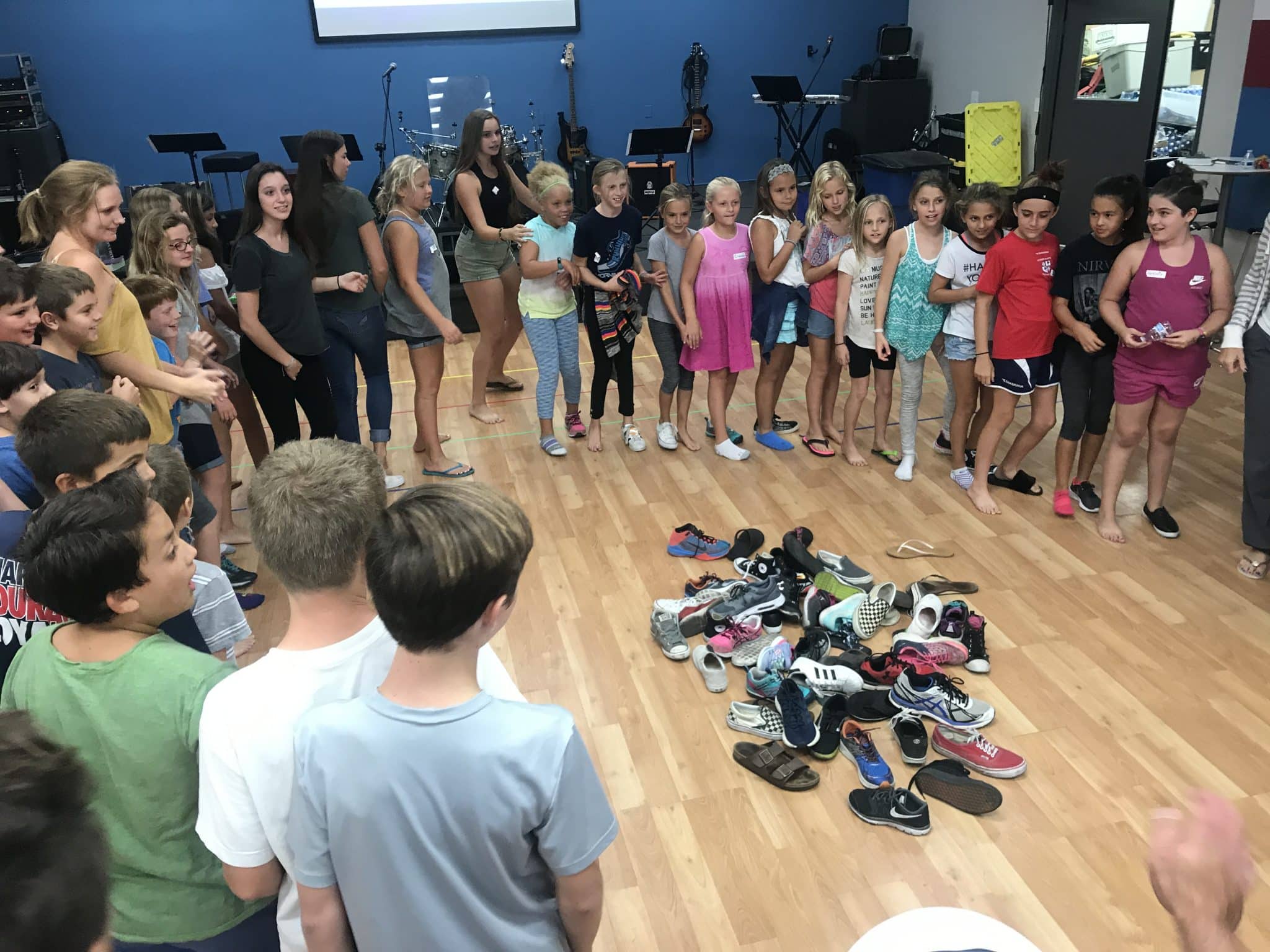 What a great start to the Club 45 year! The night started out with “Club Time”, where the kids get to pick from different games and activities: Apples to Apples, Connect Four, ping pong, football, basketball. Around 6:25pm, we all moved inside for group games; our weekly games & mixers are organized by our resident Mixmaster, Noreen Ippolito! All the clubbers gathered in a circle and had to remove ONE shoe and throw it in the middle. We played music while the kids and leaders walked around in a circle; when the music stopped, the kids had to grab one shoe and find its owner. Once they found the owner of the shoe, they had to introduce themselves and find out the other person’s birthday. We played a few rounds of this – until we just couldn’t take the smell anymore?! :)