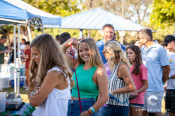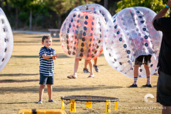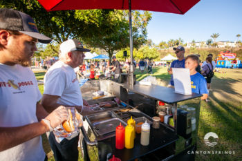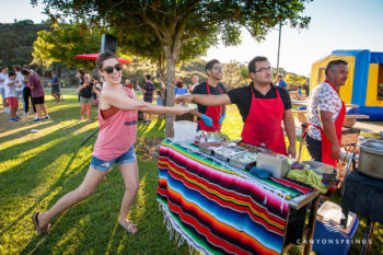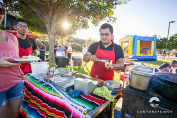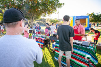 A few hundred families and friends of Canyon Springs descended on Scripps Ranch Community Park for an evening of fellowship, food and fun! At $5 all-u-can-eat, it was a great deal too. We had a Taco Cart, Hot Dog Stand, Snow-cones and Cotton Candy. Lawn games, football and Knockerball kept the kids having fun all afternoon long until the sun set.